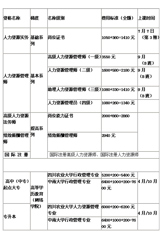 人力资源管理岗位证书、职业资格、学历文凭系列课程