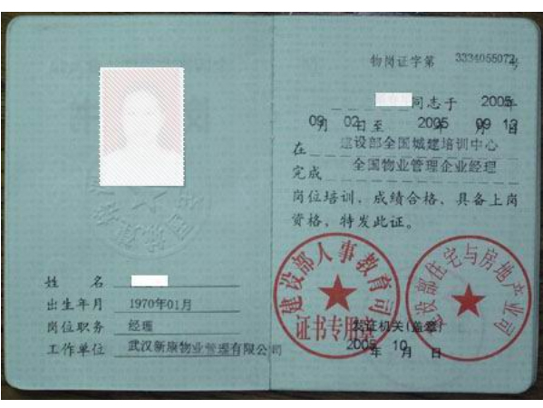 证书:考试成绩合格者,颁发由 "全国城建培训中心"印制的《全国物业管理从业人员岗位证书》。