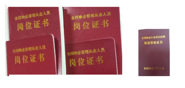 1.《全国物业行业项目经理职业资格证书》、《全国物业管理从业人员岗位证书》为物业管理从业人员上岗资格证明,限于持证者在岗期间使用。